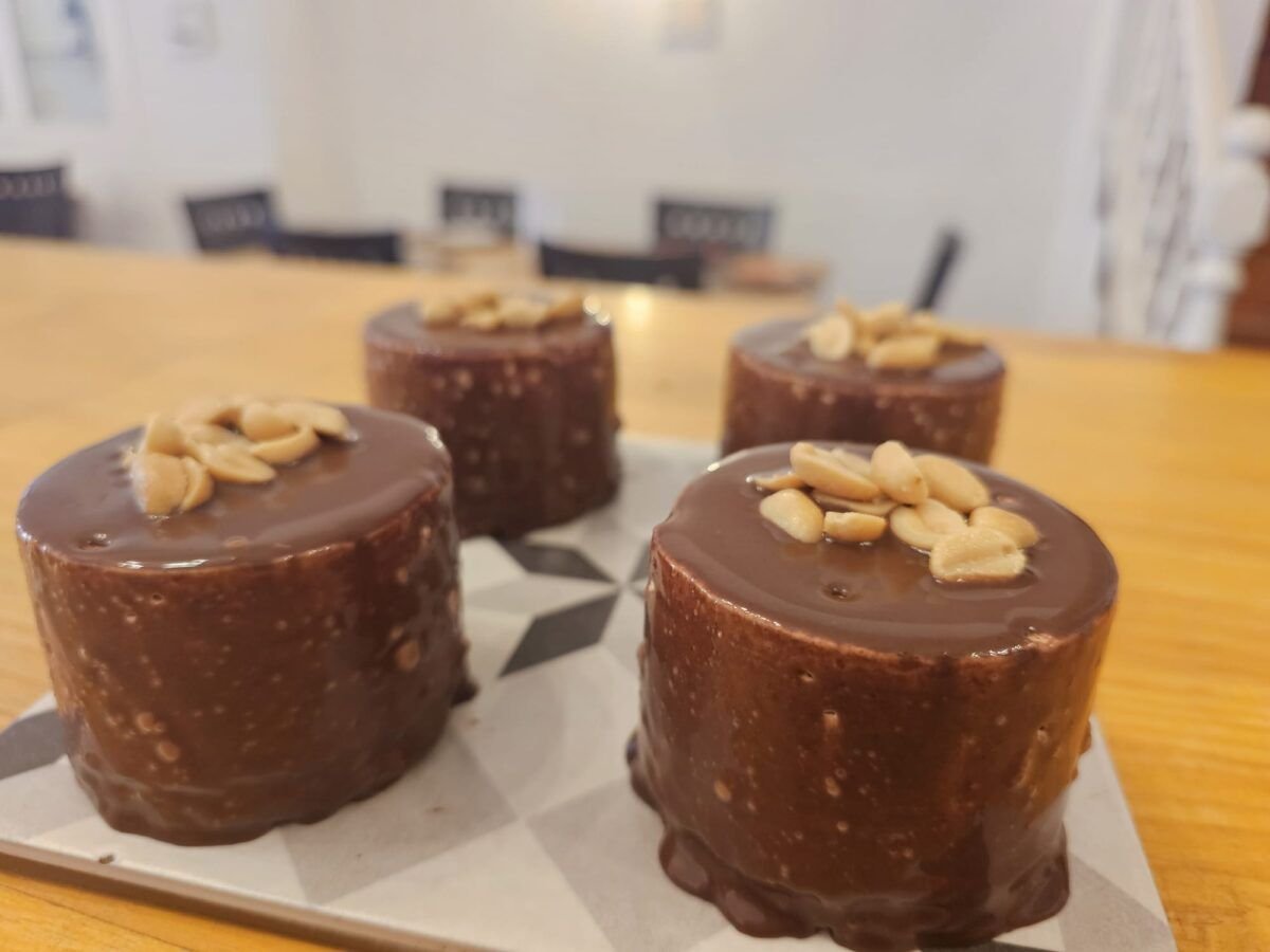 mousse de chocolate y crema de cacahuete con un interior cremoso de chocolate