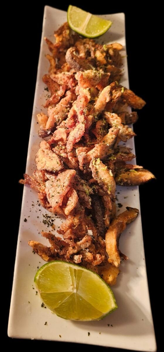Elaborado con seta shitake y seta ostra, rebozados y fritos con ese toque de alga nori, lima y crujiente