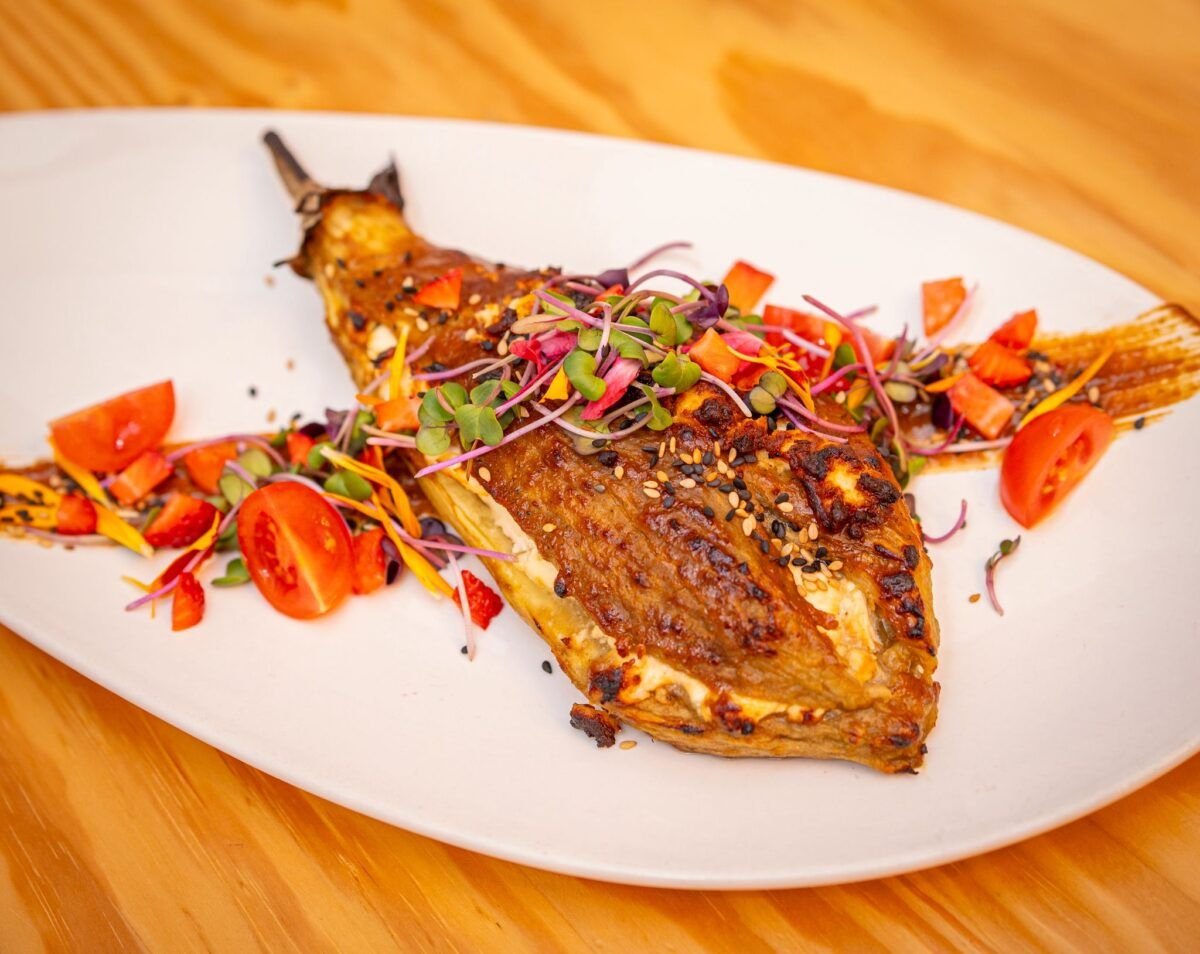 Cazón rebozado 16,5€Acompañado de platano frito y mayo kimchie