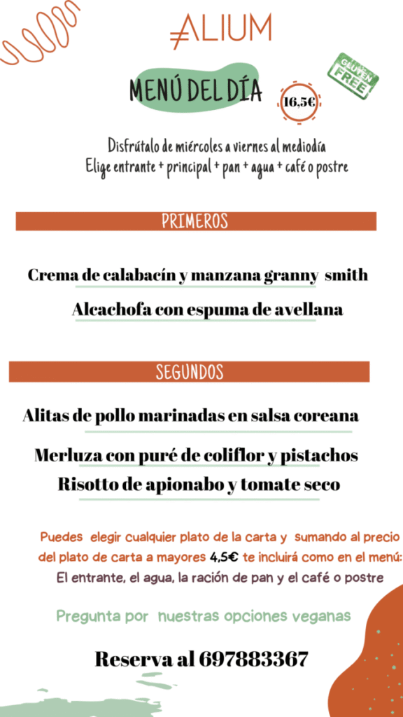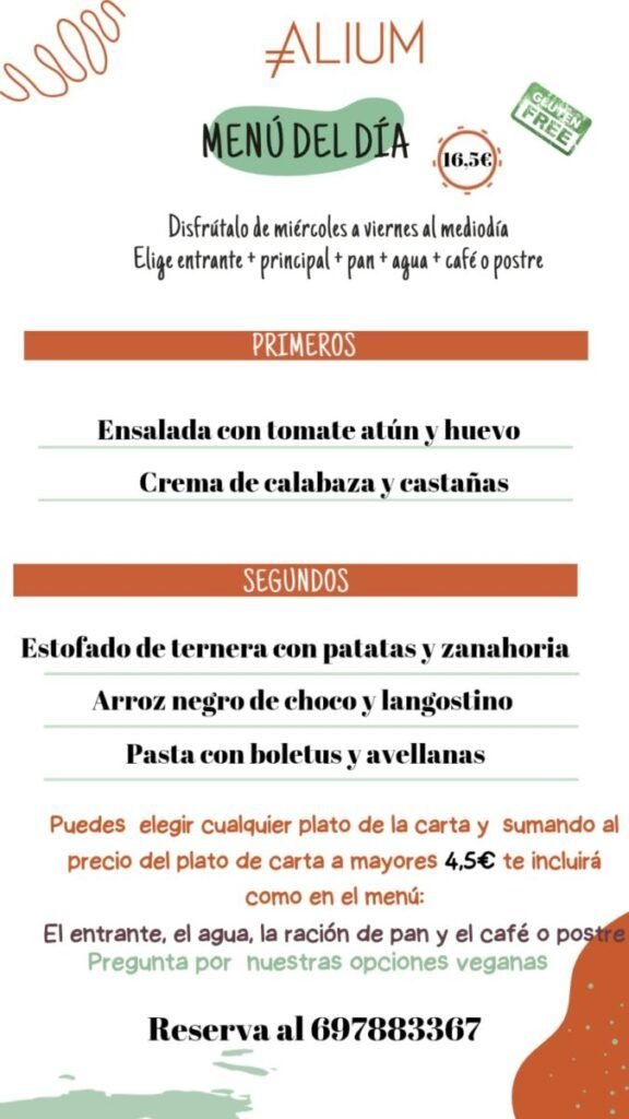 SI LO QUE TE APETECE ENTRE SEMANA ES PROBAR UNO DE NUESTROS PLATOS DE CARTA… DE MIÉRCOLES A VIERNES AL MEDIO DÍA TIENES LA OPCIÓN DE CREAR TU MENÚ CON UN PLATO DE CARTA AÑADIENDOLE A SU PRECIO 4,5€ PARA QUE TE INCLUYA AGUA + ENTRANTE + PAN + CAFÉ O POSTRE